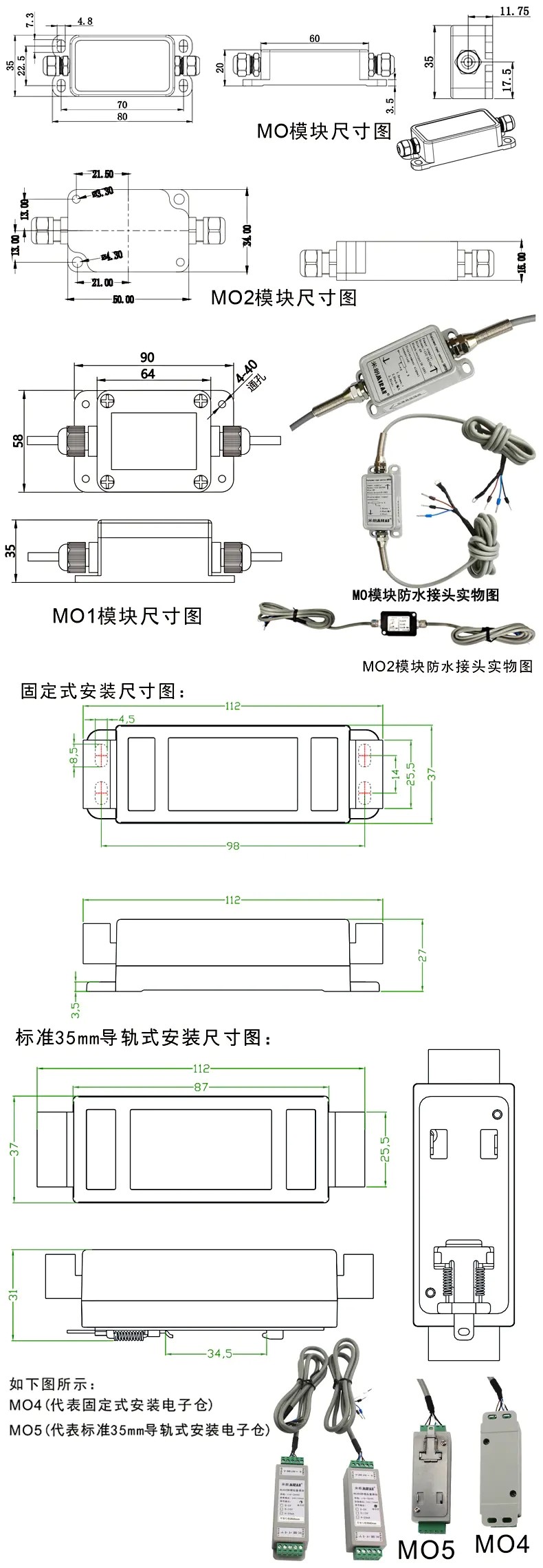 如果供電電壓只有24V的,沒(méi)有5V或者是10V的電源,但是輸出卻想要0-5V或者0-10V,那就需要配我們的模塊即可。如果需要4-20MA或者RS485輸出的,就必須配模塊才行。模塊可以內(nèi)置在傳感器內(nèi)部,也可以外置插頭模塊(限模擬量信號(hào)輸出)、或單獨(dú)的鋁合金或塑膠殼的模塊。