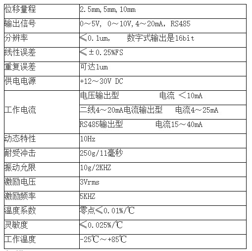 LVDT位移傳感器性能參數(shù):