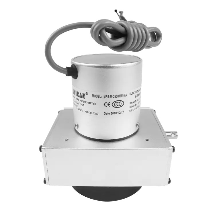 MPS-M 拉線編碼器拉繩尺,又稱拉繩位移傳感器,拉線尺,拉線編碼器,拉線位移傳感器,是直線位移傳感器在結(jié)構(gòu)上的精巧集成,充分結(jié)合了角度傳感器和直線位移傳感器的優(yōu)點,成為一款結(jié)構(gòu)緊湊、測量行程長、安裝空間尺寸小、具有高精度測量的優(yōu)良傳感器。MPS-M 拉線編碼器拉繩尺系列產(chǎn)品具有很大的選擇空間,行程從200mm至20000mm不等, 具有模擬電流信號mA:4-20mA,模擬電壓信號V1:0-5V,V2:0-10V和脈沖信號P:A、B、Z相數(shù)字輸出,RS485數(shù)字信號輸出。滿足大行程、高精度各種信號需求。
