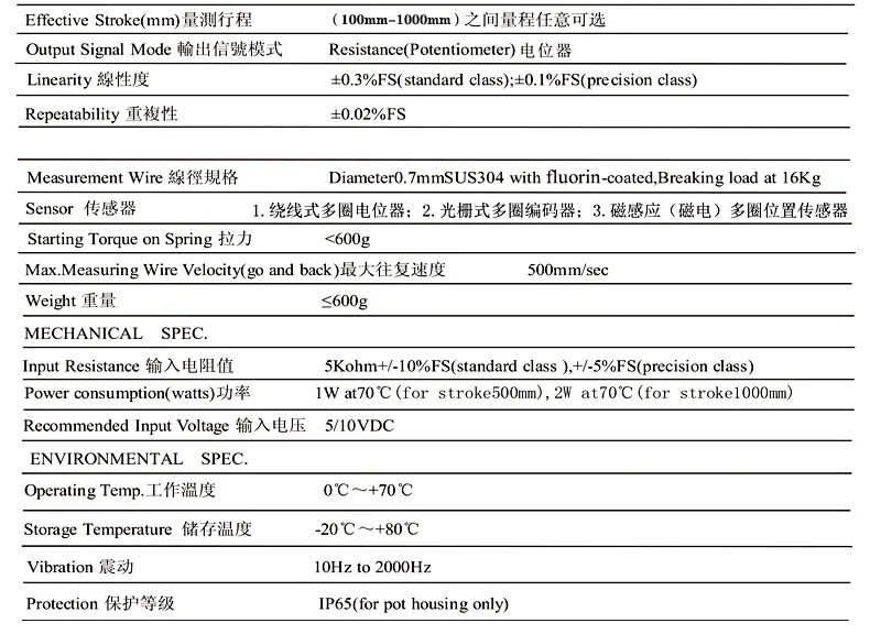 SM-S型拉線位移傳感器,又稱拉繩編碼器,拉繩尺,拉線尺,拉線編碼器,拉繩位移傳感器,是直線位移傳感器在結(jié)構上的精巧集成,充分結(jié)合了角度傳感器和直線位移傳感器的優(yōu)點,成為一款結(jié)構緊湊、測量行程長、安裝空間尺寸小、具有高精度測量的優(yōu)良傳感器。SM型拉線位移傳感器具有很大的選擇空間,行程從200mm至20000mm不等, 具有模擬電流信號mA:4-20mA,模擬電壓信號V1:0-5V,V2:0-10V,脈沖信號P:A、B、Z相數(shù)字輸出,數(shù)字信號RS485。滿足大行程、高精度各種信號需求。