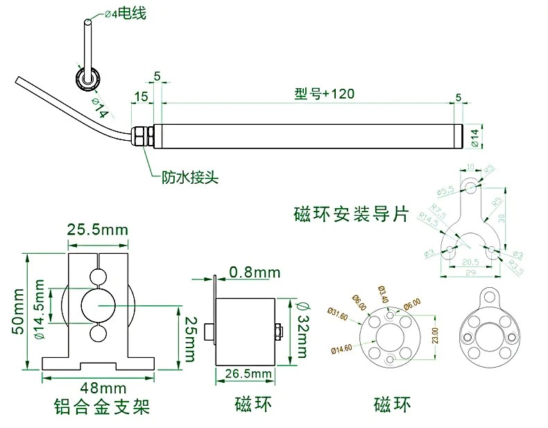 PME14磁阻式防水型直線位移傳感器安裝尺寸: