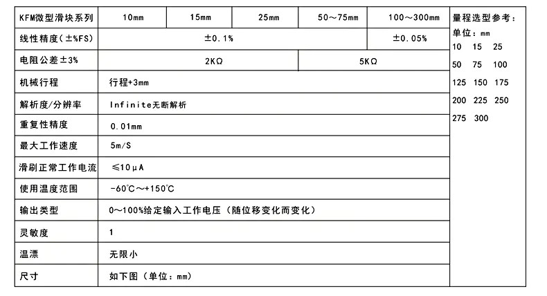 KFM微型滑塊式電阻尺技術(shù)參數(shù)及安裝尺寸: