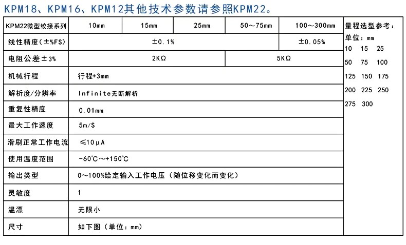KPM18小型鉸接式電阻尺的參數說明:(KPM18參數參照KPM22)