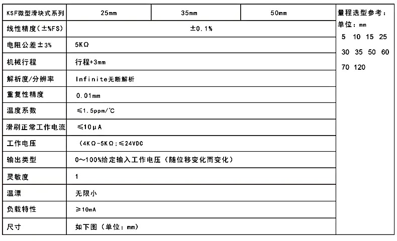 KSF微型滑塊式位移傳感器的參數說明: