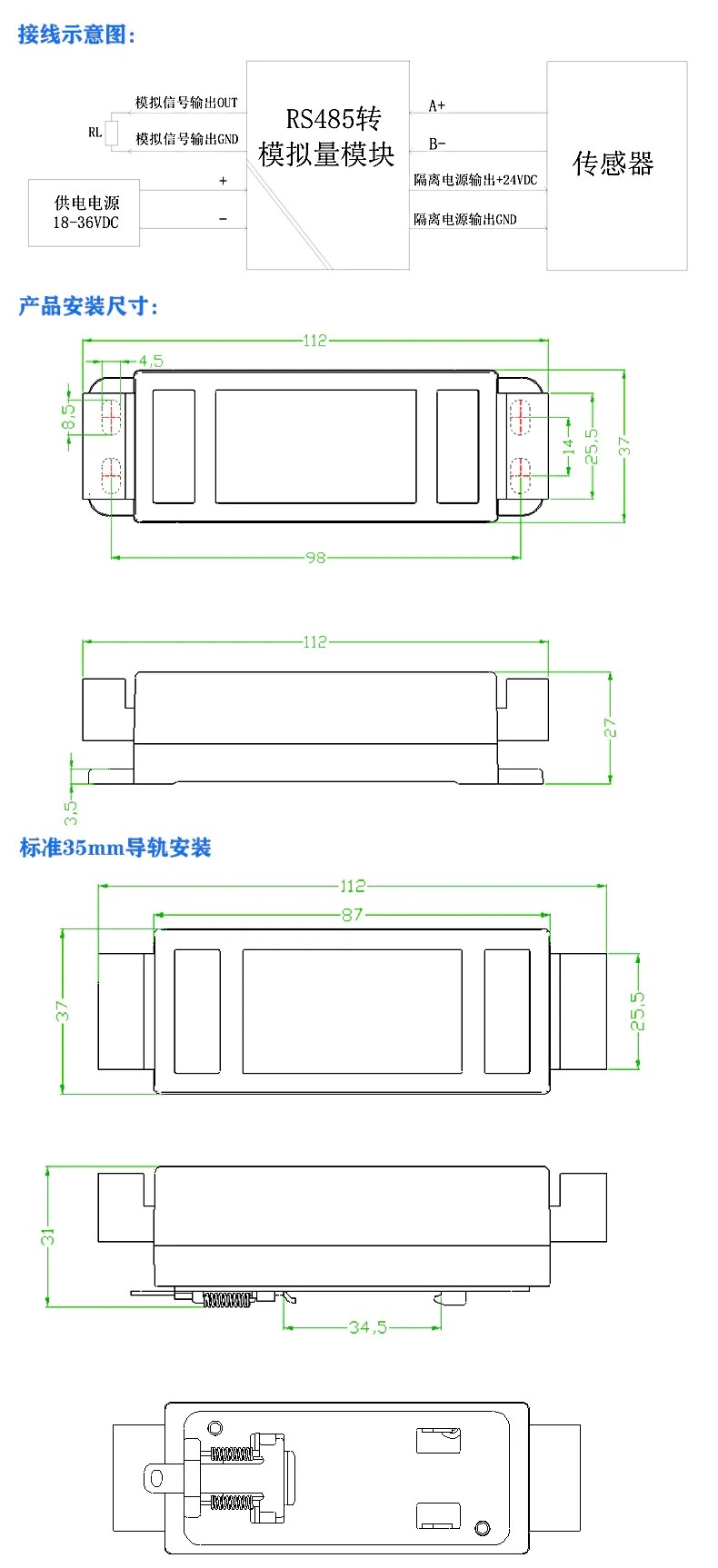 模擬量輸出0-5V,0-10V,4-20mA可定制。
