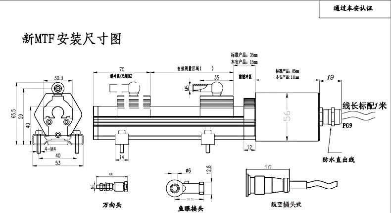 MTF本安型磁致伸縮位移傳感器安裝尺寸: