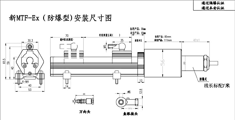 MTF隔爆型磁致伸縮位移傳感器Exdb IIC T6 Gb證書: