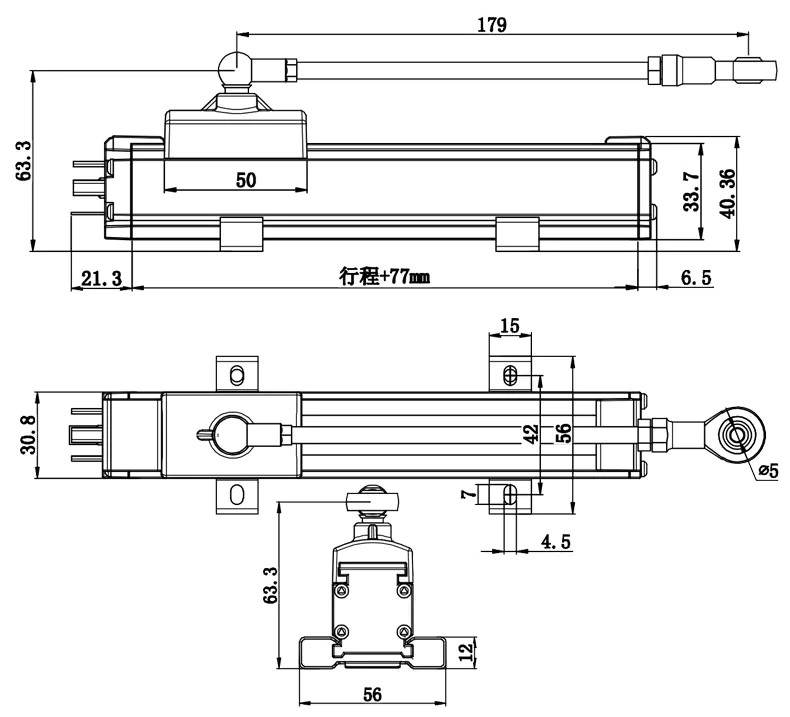 PMF滑塊磁阻式位移傳感器安裝尺寸: