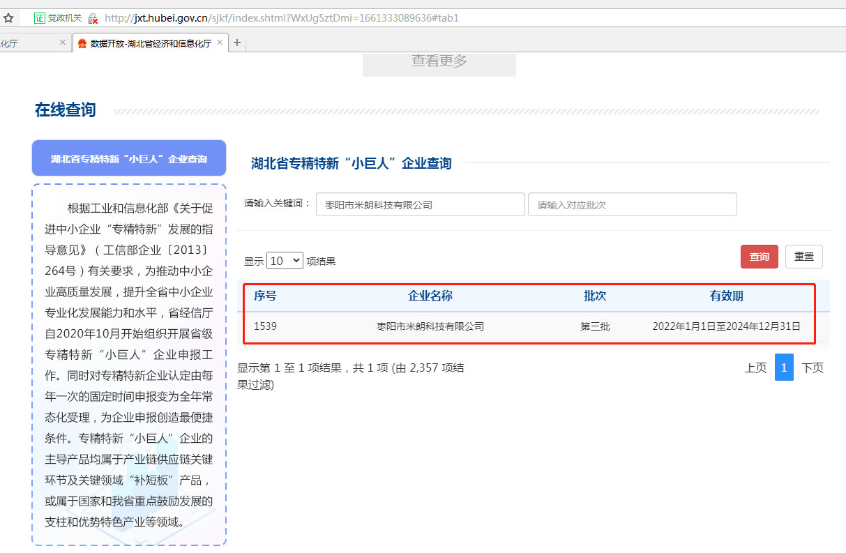 米朗喜訊|米朗科技有限公司入選國家級專精特新“小巨人”企業