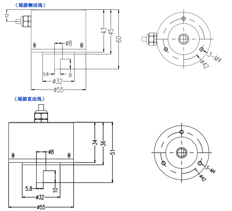 七、防水型磁感應多圈角度傳感器安裝尺寸: