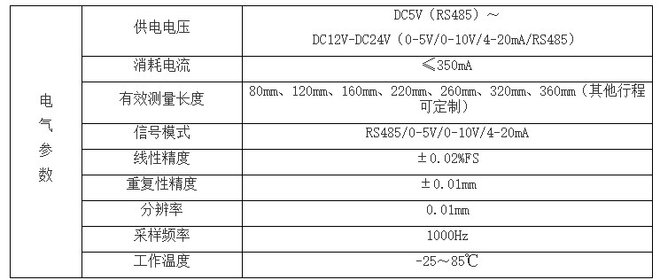 MTMD/MTMD2滑塊式位移傳感器技術(shù)參數(shù):