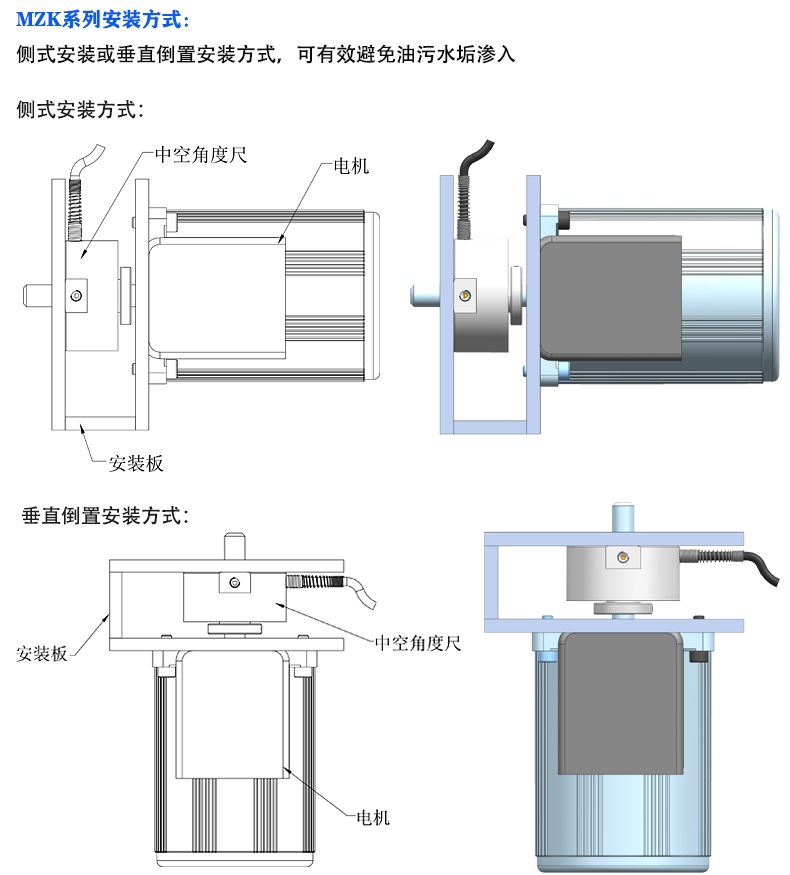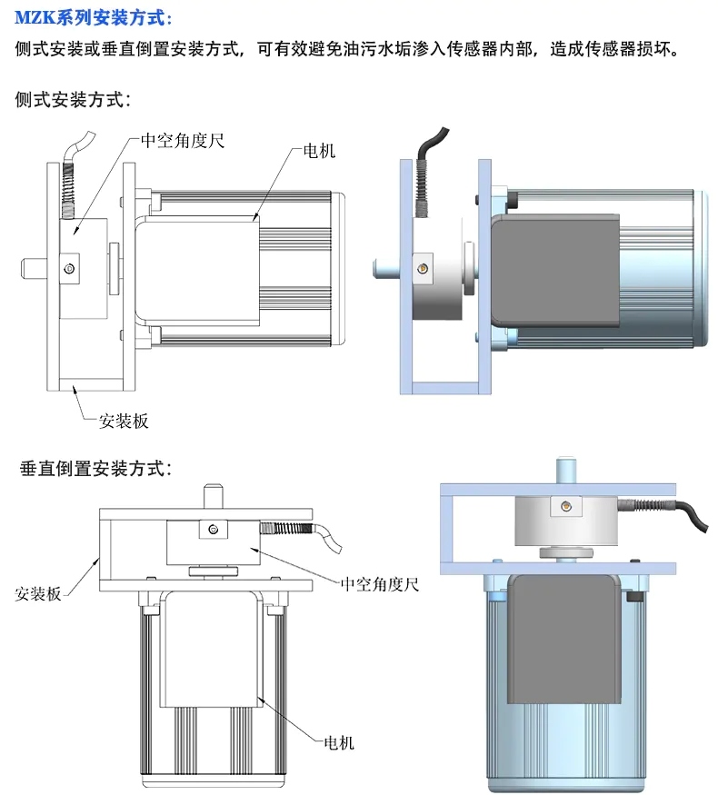 MZK-(6mm-50mm)中空軸角度傳感器安裝方式: