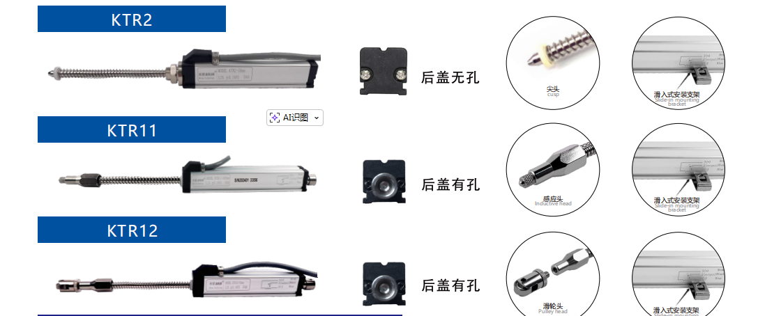 米朗KTR系列是內置或者外置復位彈簧的直線位移傳感器,測量桿與被測量對象通過滾輪或圓點接觸,被測物體位置的移動,可以通過滾輪或圓點接觸傳遞給傳感器,而無需將傳感器的測桿固定在被測移動物體上,核心優(yōu)點是利用內置或外置的彈簧,在執(zhí)行機構失去推力后,能自動、可靠地回位到機械零點,無需額外驅動裝置。同時,它還兼具高可靠性、抗惡劣環(huán)境和便于安裝等特點,尤其適合空間有限的場合,無需嚴格對準,進一步簡化了安裝流程。廣泛應用于印刷機械、包裝機械、紙品機械、機械手等自動化控制領域。